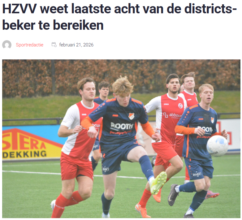 Deze zaterdag treden wij aan tegen JO-17-4 van v.v. De Weide. Onze favo-tegenstander. Ook omdat ze net zo goed zijn als wij en natuurlijk omdat jongens elkaar kennen. Ooit wonnen we onze enige wedstrijd van de periode bij v.v. De Weide. In de tweede periode speelden we 6-6 met over en weer diverse gastspelers…dit keer traden we op veld 2 aan tegen de plaatsgenoten. Het werd de wedstrijd van Sem Hutten. Hij scoorde 4 van de 4 goals. En doordat de rest van het team (Keano op goals, Mik, Kayra, Joah, Cem – opkomende linksback-, Milan, Dave, Koen1 en Koen2, Nobel, Jodida, Mees en Aron) er voor zorgde dat we maar 2 tegengoals kregen won HZVV JO-17-4 haar tweede wedstrijd van de derde periode. En dat is iets wat we aan het begin van het seizoen niet gedacht hadden. Het team wordt steeds beter. Ook de 4-4-2 opstelling werkt steeds beter. Vaak komt de rechtsback van de tegenpartij vrij te staan, maar dat viel op te vangen. Een prachtige wedstrijd werd het.